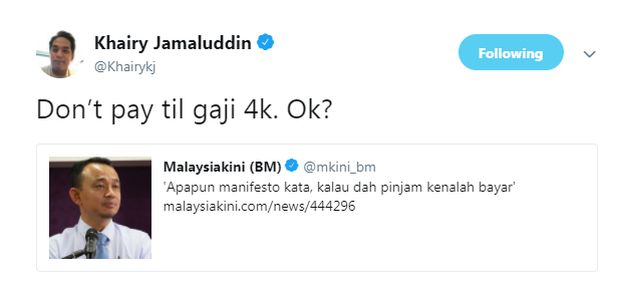Jangan Bayar Sehingga Gaji Rm4 000 Okay Kj Terus Sindir Isu