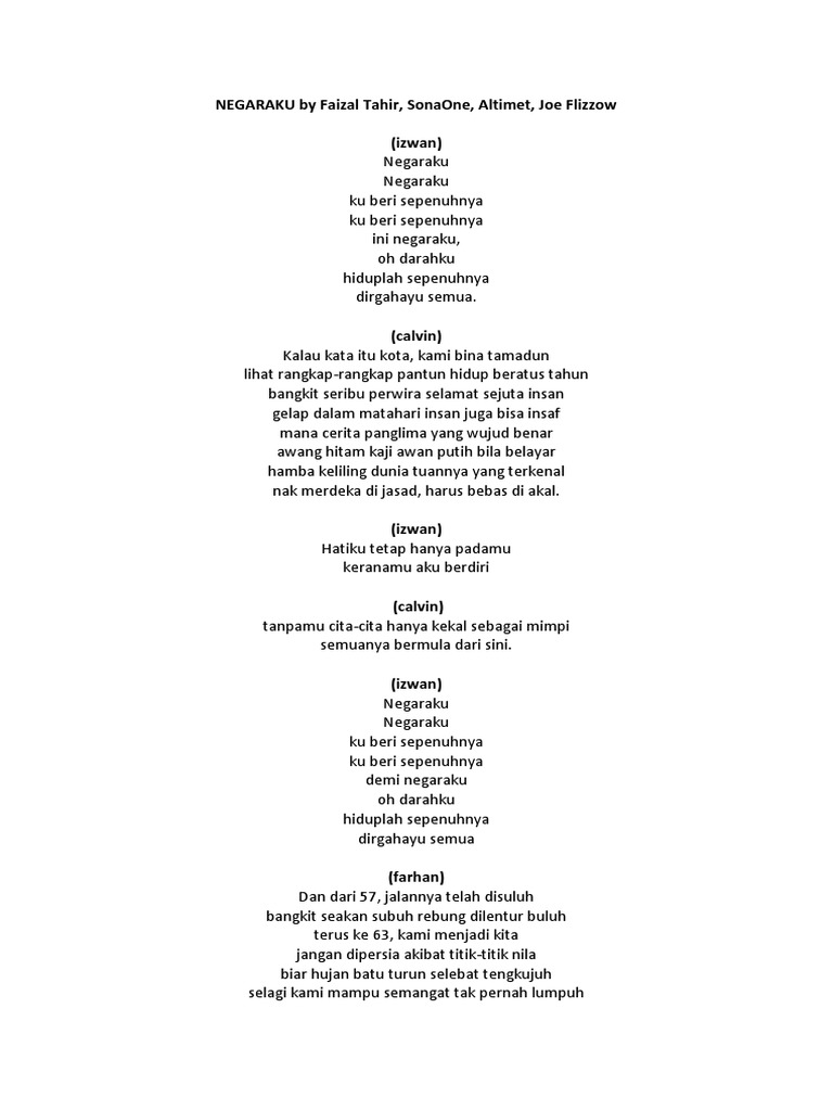 Lirik Lagu Negaraku Joe Flizzow Altimet Sonaone Faizal Tahir