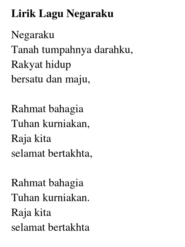 Lirik Lagu Negaraku Versi Bahasa Sekolah Rendah Islam Al