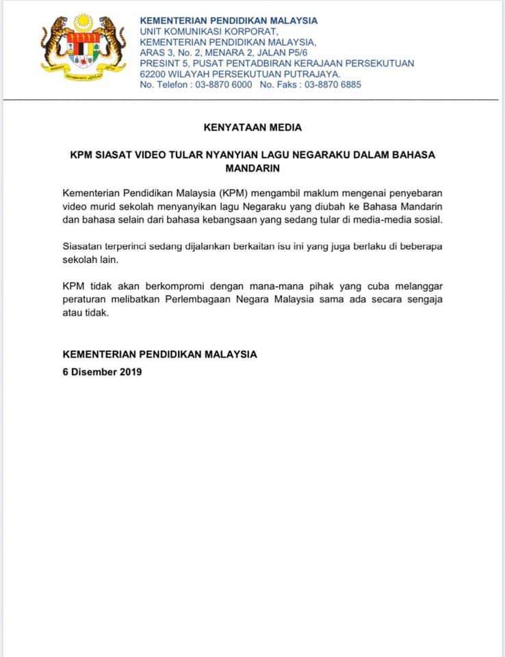 Kpm Siasat Video Tular Nyanyian Lagu Negaraku Dalam Bahasa Mandarin