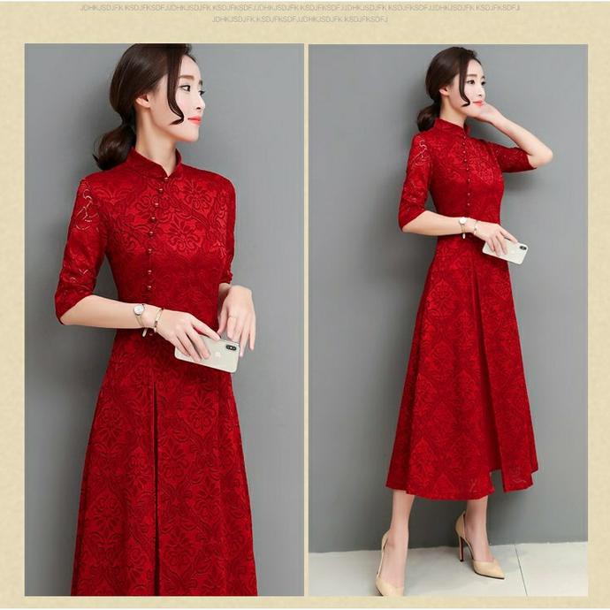 Imlek Adat Dress Klasik Shanghai Cheongsam China Cina Baju Pakaian