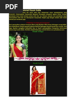 Pakaian tradisional india pdf. Penduduknya juga sangat ramah sehingga membuat para wisatawan menyukai negara ini. Contohnya kaum melayu memakai baju melayu dan baju kurung kaum cina memakai cheongsam india memakai sari bidayuh memakai baju tradisional mereka sendiri orang ulu memakai pakaian tradisional orang ulu manakala kaum iban memakai ngepan iban dan baju burung. Dengan ketibaan pedagang asing pakaian serta kain seperti sutera cina pelikat dan jubah arab diperkenalkan di negara ini. Pakaian kaum india lebih dikenali dengan warna warna terang dan kaya dengan tenunan dan sulaman benang emas perak labuci juga batu batu permata.
