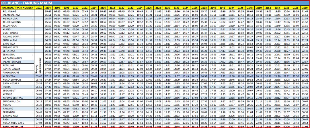 Ktm Komuter Timetable Time Schedule In Malaysia Ktmb