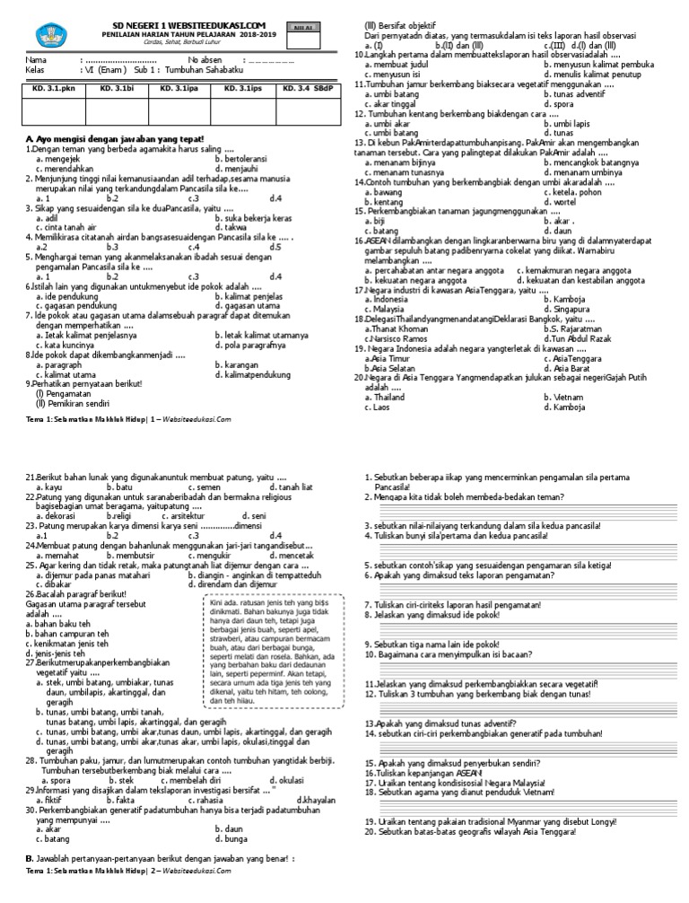 Soal Ph Kls 6 Rev 2018 Tema 1 1 Websiteedukasi Com